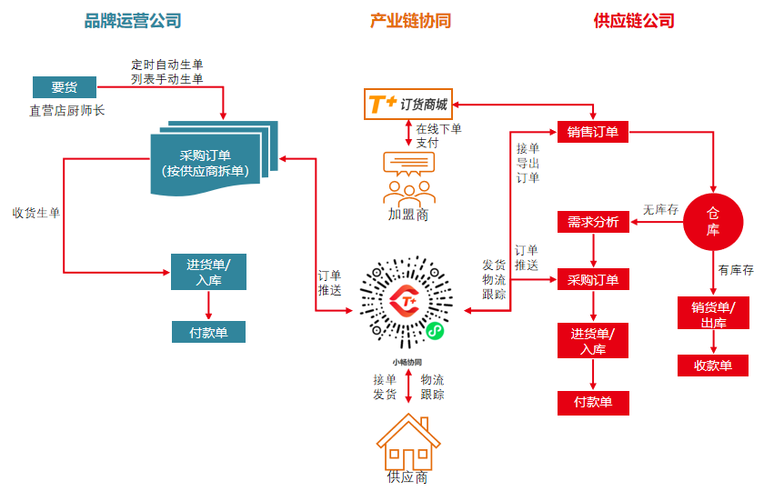 使用畅捷通T+Cloud的小畅协同,实现打通门店-供应链公司-供应商三者之间的信息链路,降低沟通成本,杜绝信息处理错误。