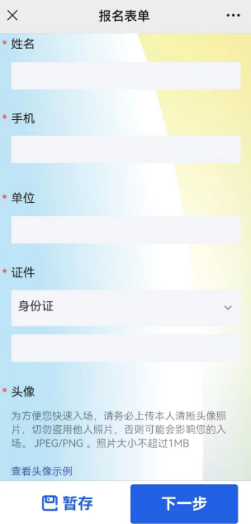 2. 按提示填写报名表单,包括姓名、手机、单位、身份证等个人信息,然后提交;