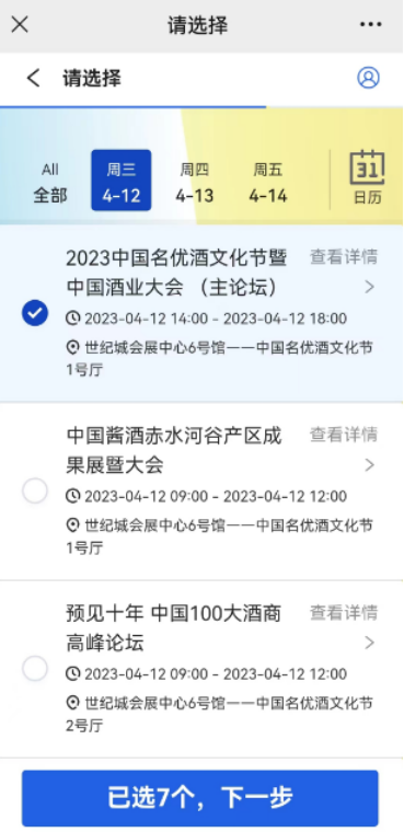 3.选择要参加的会议,可按日期选择,也可直接选择,支持多选;