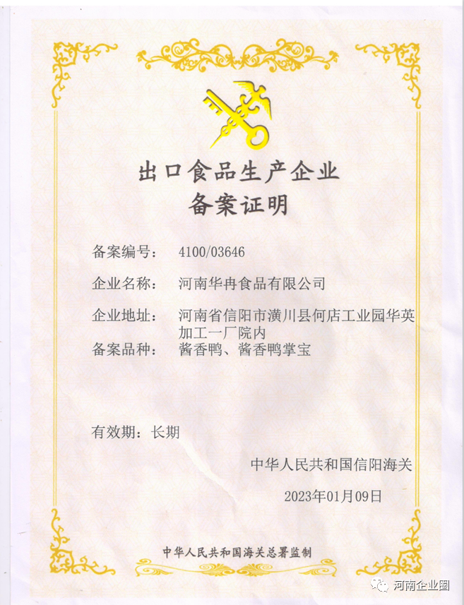 为了扩大经营范围,增强企业盈利能力,华冉公司从2022年底开始着手办理食品进出口有关备案:2022年12月6日完成了对外贸易经营者备案登记;2023年1月9日分别完成了工商营业执照的经营范围变更(新增了食品进出口、水产品批发、水产品零售)、出口食品生产企业备案证明(备案号:4100/03646);2023年2月7日完成了进口收货人备案;2023年3月7日收到郑州海关寄来的中国电子口岸卡,至此华冉公司成功具备进出口业务资格。