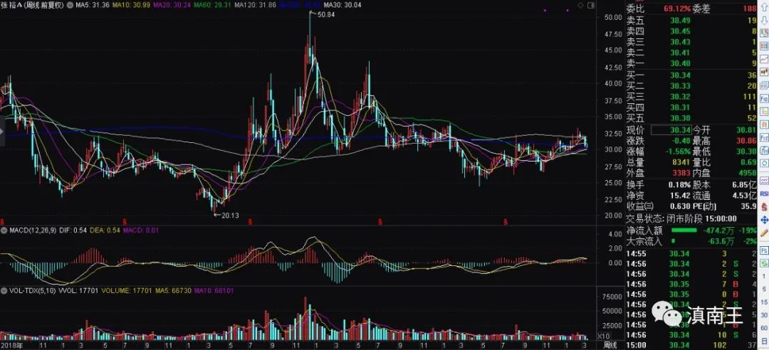 周线上,20元见底后出现反弹,25元构建了一个头肩底,现在30元附近已经横盘很长时间,后面看着市场选方向就行,如果往下,25元和20元都是非常大强的支撑位!