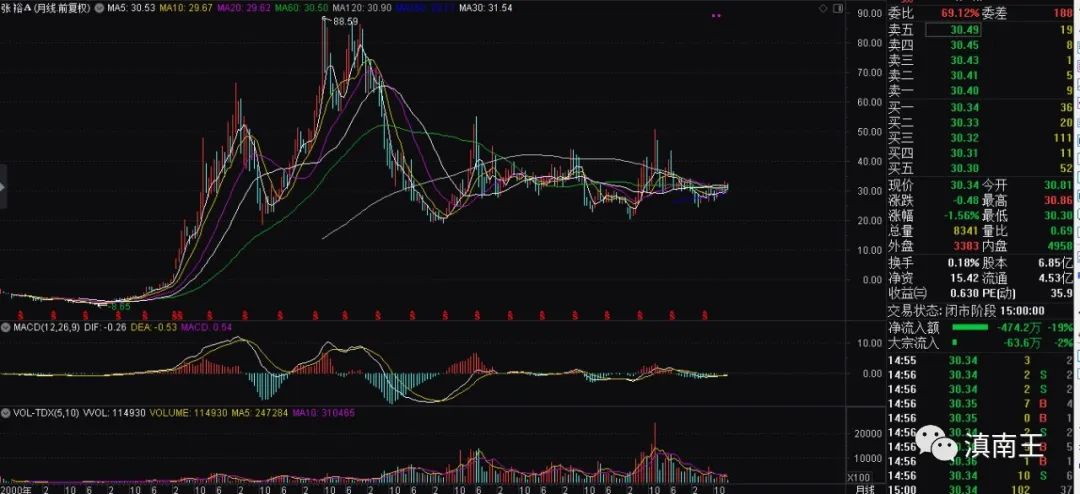 其实这里要注意一个问题,现在很多大牛股,都会像张裕一样,大涨后,就一直横盘,横盘的时间可能是三年、也可能是五年、还可能像张裕一样长,十几年,这就是市场极端的地方!