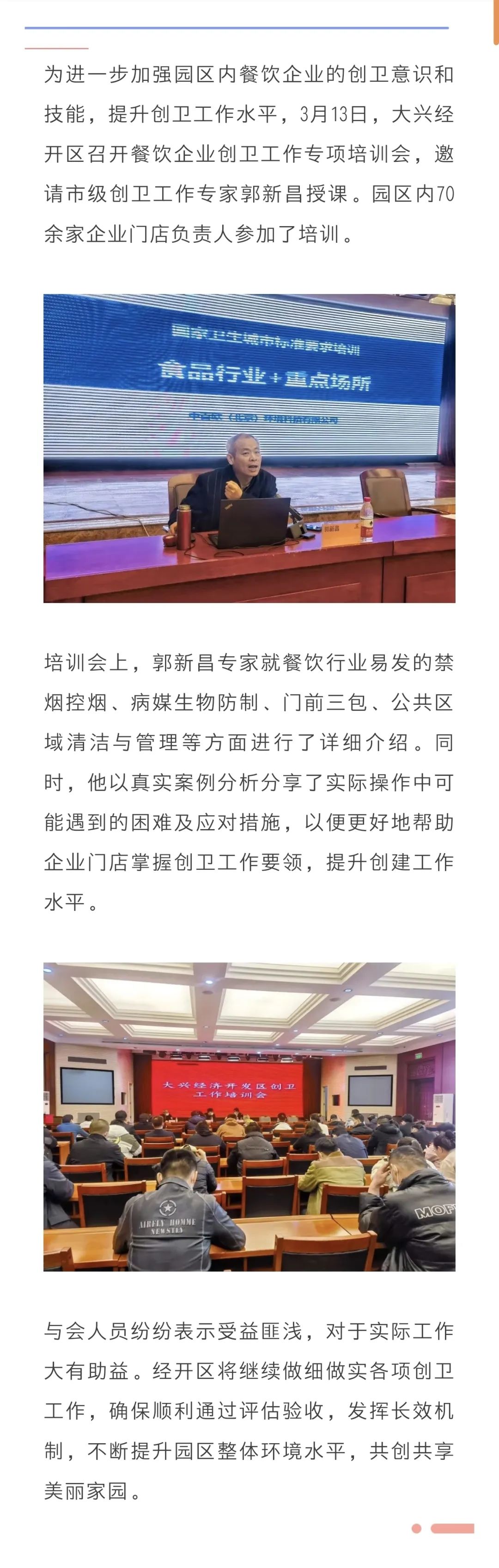 进行时 | 大兴经开区召开餐饮行业创卫工作专项培训会