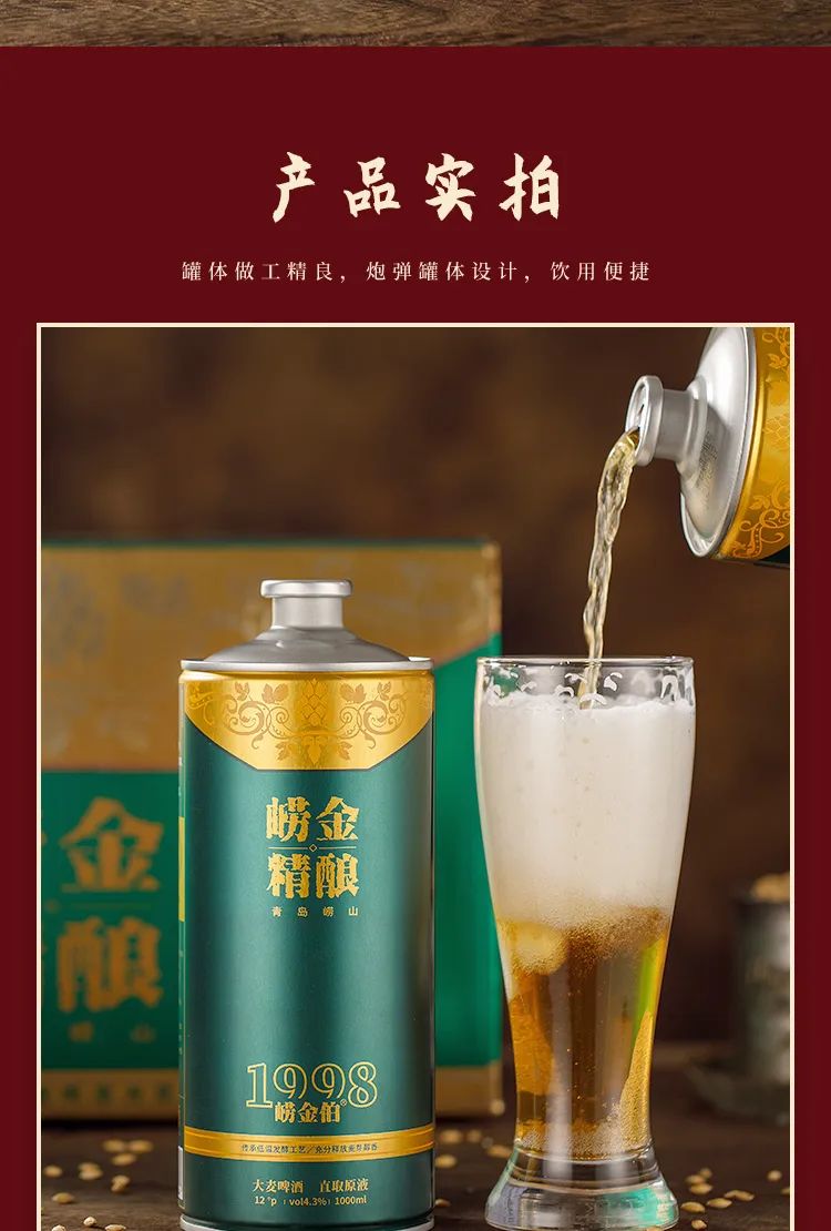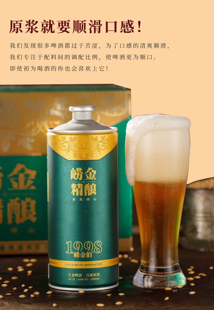 青岛崂金精酿,甄选好材料,采用崂山优质水源,运用最先进的无菌鲜活酵母,无添加无残留,还原啤酒原始的纯正风味,好喝到上头