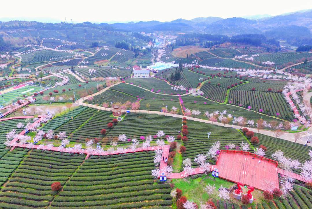 二龙万亩茶海,浪漫樱花绽放!