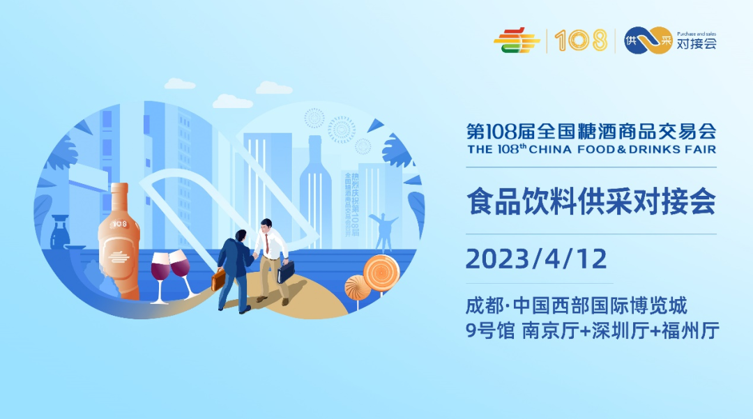第108届全国糖酒会VIP采购商活动将于2023年4月12日-13日分别在西博城和世纪城两个展馆举办。其中供采对接会将分为食品饮料类、预制菜类、酒类三个专场。我们将邀请来自线下零售、电商及O2O、餐饮、贸易批发四个渠道120多家重点采购商齐聚展会现场,精准匹配展商需求,现场洽谈合作。