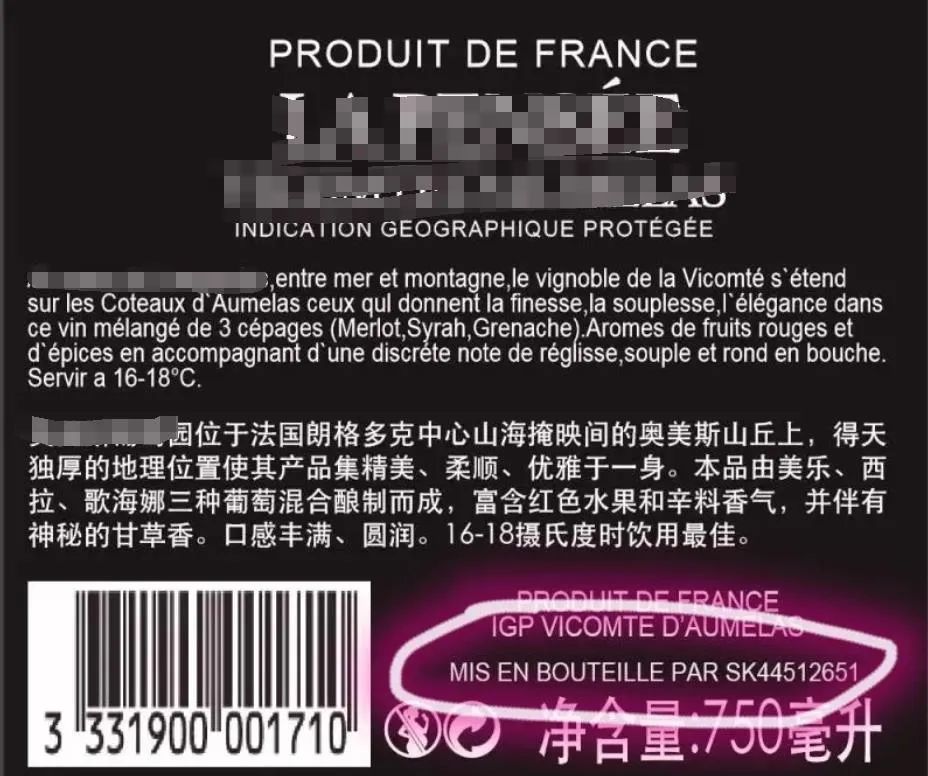 这类酒要么酒商名字特别长不方便写,要么就是不想让你知道(潜台词:我堂堂法兰西不生产这种垃圾酒),这种酒多在小工厂或是其他欧盟国家生产,例如上图缩写表示该酒产自斯洛文尼亚。