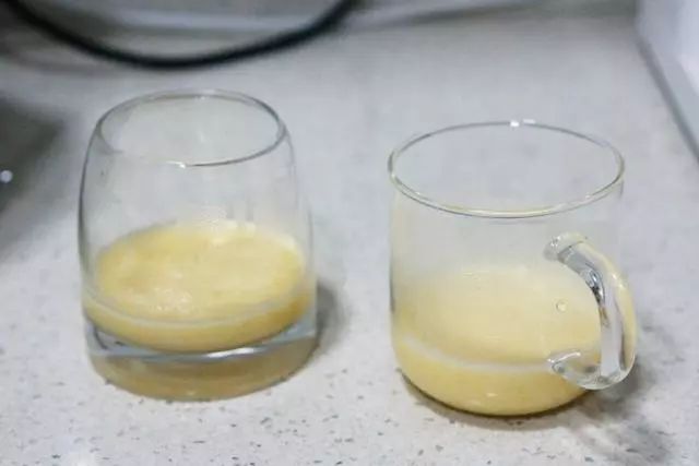5.将芒果风味先冷却凝固。杯中物完全凝固即可。