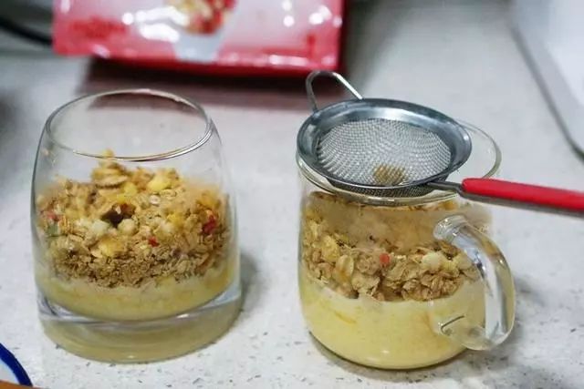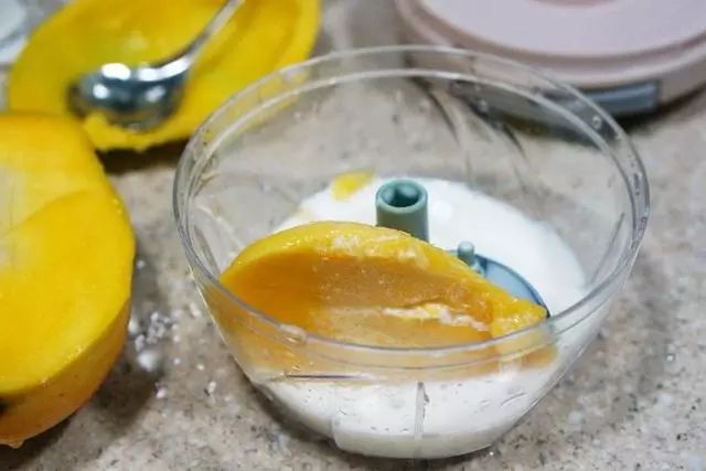 牛奶 250、芒果 1个、吉利丁片 2片、麦片 适量