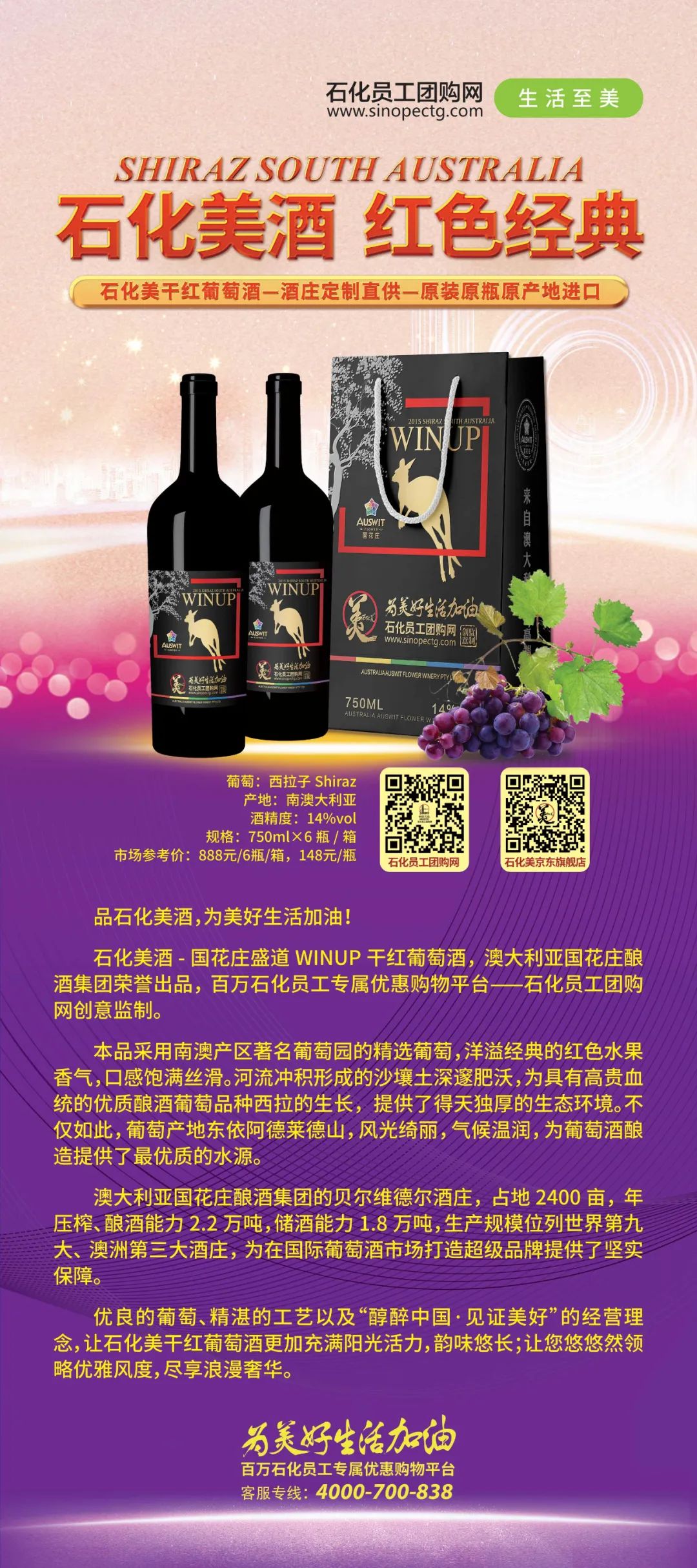 “石化美”酒—国花庄盛道WINUP干红葡萄酒,澳大利亚国花庄酿酒集团荣誉出品,百万石化员工专属优惠购物平台——石化员工团购网创意监制。
