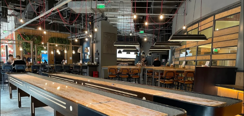 餐厅内设有两台桌面沙壶球,您也可组局对战