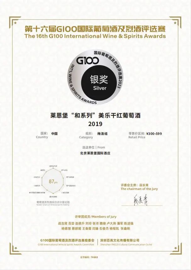 酒体饱满,结构平衡,单宁细腻,口感浓郁丰富,余韵持久悠长。
