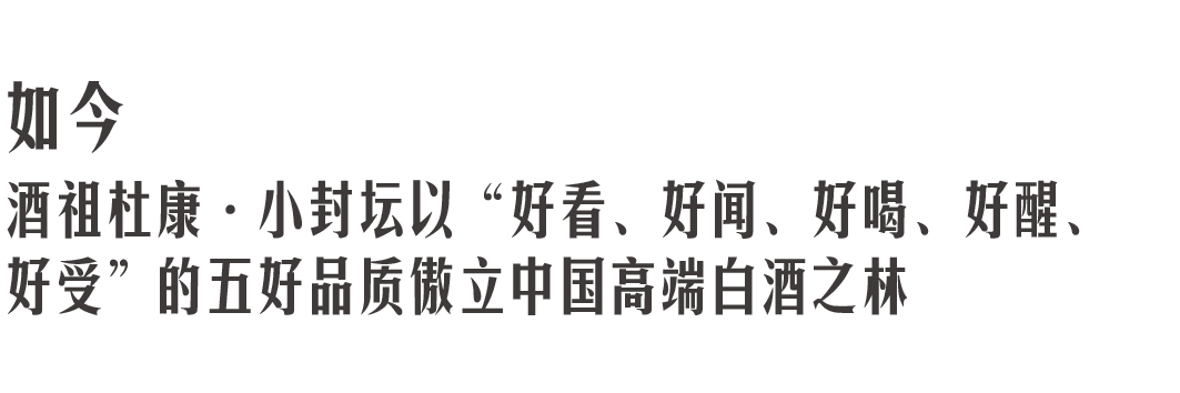 酒祖杜康·小封坛作为杜康旗舰产品,2018年产品一经推出,即因其业界轰动,知名白酒专家赖登燡、程宏连品鉴后给予“无色清凉透明,窖香优雅,沉香怡人,绵柔干润,自然谐调,余味爽净,具有本品独特风格。适口性好,属于高端浓香型白酒品质”的高度评价!五年来,酒祖杜康·小封坛直面消费者,在全国不断开展品鉴会等市场活动,广大消费者对酒祖杜康·小封坛给出了“好看、好闻、好喝、好醒、好受”的五好品质评价,称酒祖杜康·小封坛为“中国白酒五好生”!并对酒祖杜康·小封坛“清微澹远,中正平和”的八大意蕴赞赏有加。