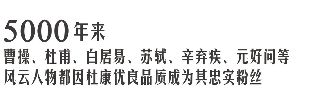 杜康作为中国酒始创者,5000年来因其优良品质受到无计其数的历史名人追捧和背书,杜康为名家赞誉,千古只此一酒!1972年因国家领导人关心和关爱而实现现代化大规模生产后,更加重视品质和质量,接连获得产品质量类重大奖项。如今的杜康在传承千年杜康技艺的基础上,品质再次走高,旗下高端产品酒祖杜康·小封坛以“好看、好闻、好喝、好醒、好受”的五好品质评价,傲立中国高端白酒之林!