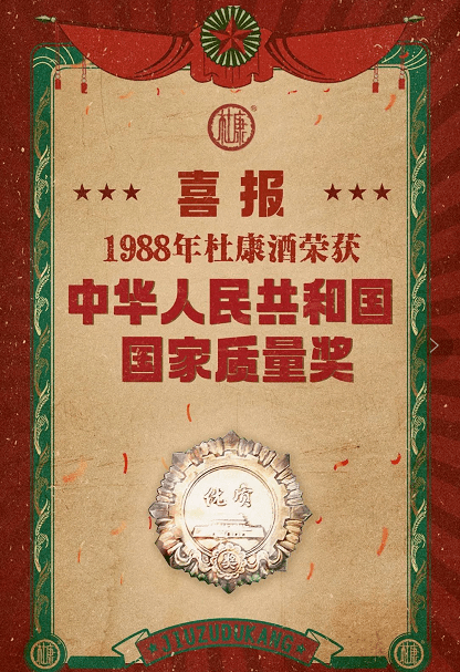 1988年杜康酒荣获“中华人民共和国质量奖”。