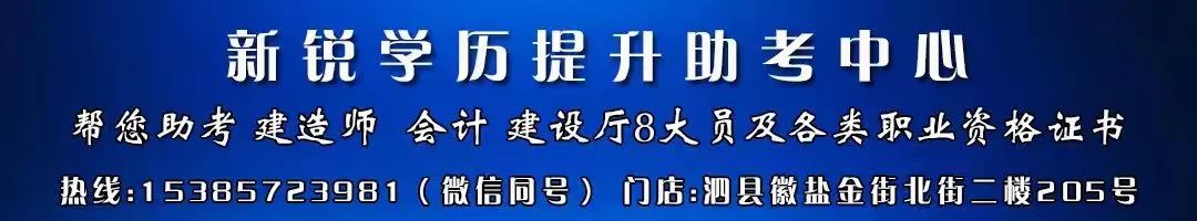 【提升学历】2023成人高考报名开始!泗县小伙伴们想报大专、本科学历可咨询新锐学历提升中心 (初中文凭也可报大专!!)姗姗老师热线:15385723981 (微信同步)门店:泗县徽盐金街北街二楼