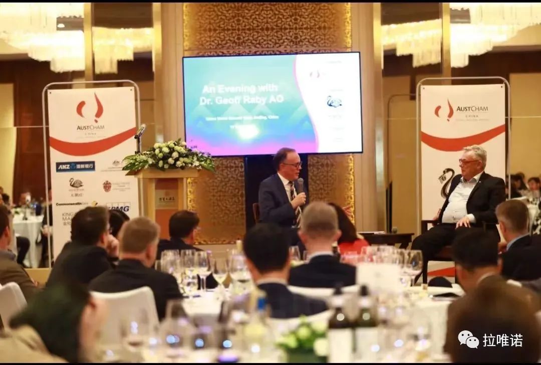 2023年3月10日,由中国澳大利亚商会主办的芮捷锐博士之夜(An Evening with Dr. Geoff Raby)在京举办。现任澳大利亚驻华大使傅关汉(Graham Fletcher)与前澳大利亚驻华大使(2007-2011)芮捷锐博士共同出席了会议。