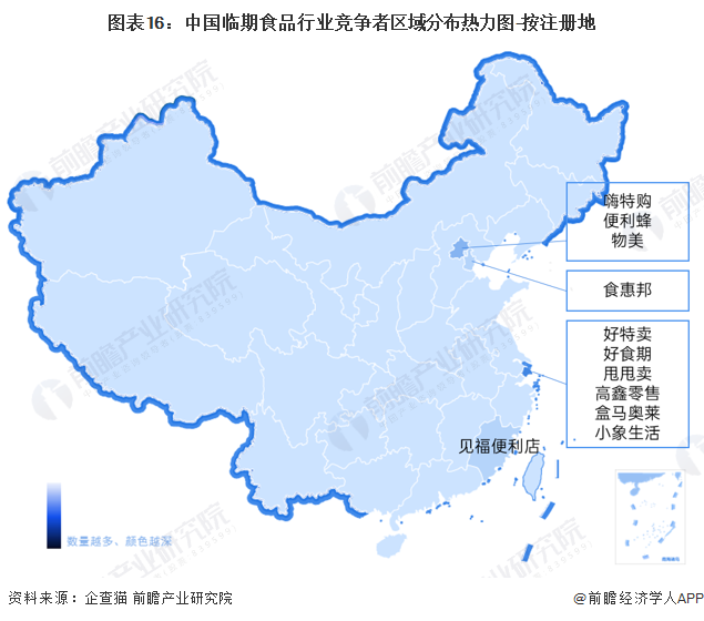 根据区域热力图,我国临期食品代表企业主要集中在上海,兴起了一批如好特卖、好食期、甩甩卖等为代表的临期食品专卖折扣店;也有在临期食品领域率先探索并建立起较为完善管理体系的传统商超,如高鑫零售。