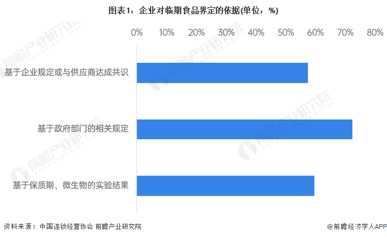 对于临期食品的界定,目前并没有明确的国家标准。根据中国连锁经营协会调研反馈,对临期食品界定,选择“基于政府部门的相关规定”作为依据的企业最多,其次是“基于企业规定或与供应商达成共识”,再次是“基于保质期、微生物等科学检测的试验结果”。