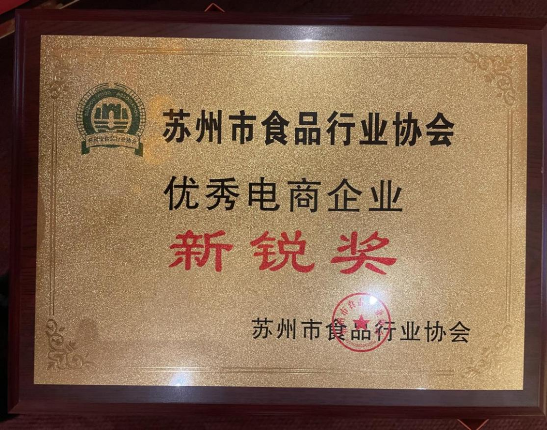 在表彰2022年食品行业优秀企业环节中,苏州十分米商贸公司荣获2022年度优秀电商企业(新锐奖)称号!
