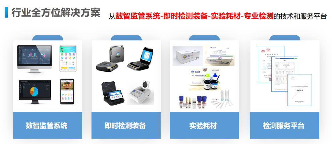 公司基于精准的检测技术,开发多款即时检测装备。应用于公安食药环侦的痕量物质取证装备;应用于检察院公益诉讼的智勘魔盒;应用于农业系统的农资打假设备。