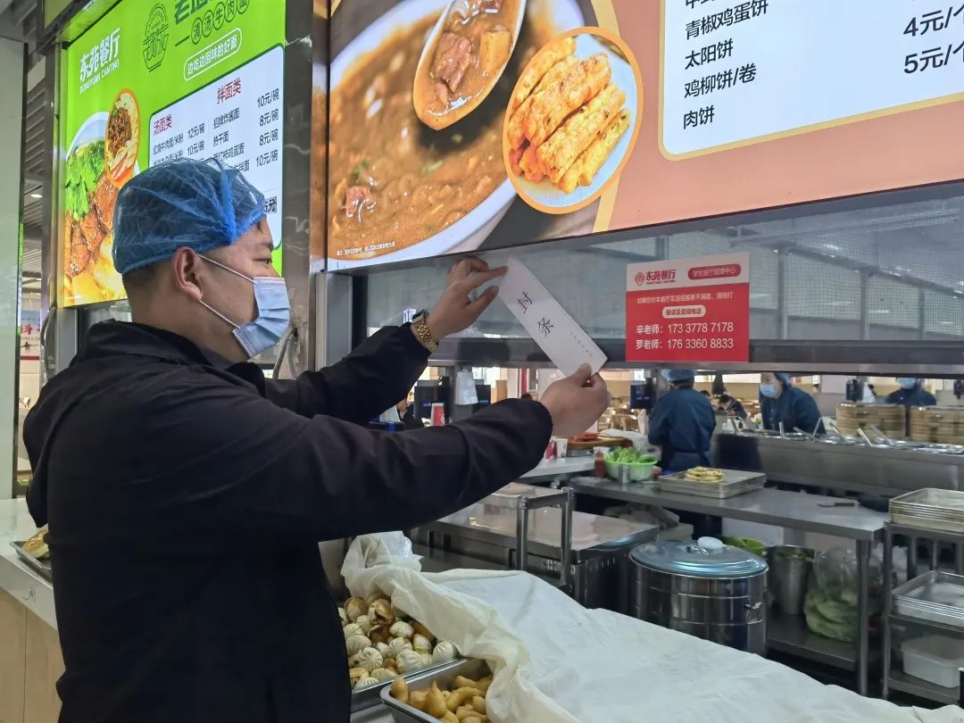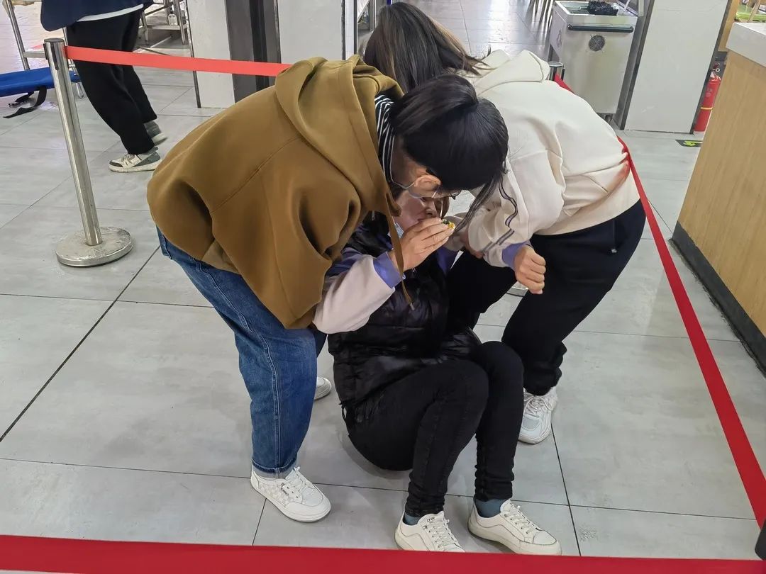 上午10点,罗盈在东苑餐厅逍遥镇胡辣汤档口就餐后,突然出现腹痛、恶心、呕吐等症状,东苑餐厅安全员李阳、张世艳迅速查看,询问情况,随即通知逍遥镇胡辣汤档口立即停止供餐,乔永慧向其他排队购餐人员作出解释,同时迅速对未售完的食品进行加盖封存,照顾“疑似食物中毒”人员。乔永慧、程英姿配合罗洁对现场进行保护,用3分钟时间维持好现场秩序。