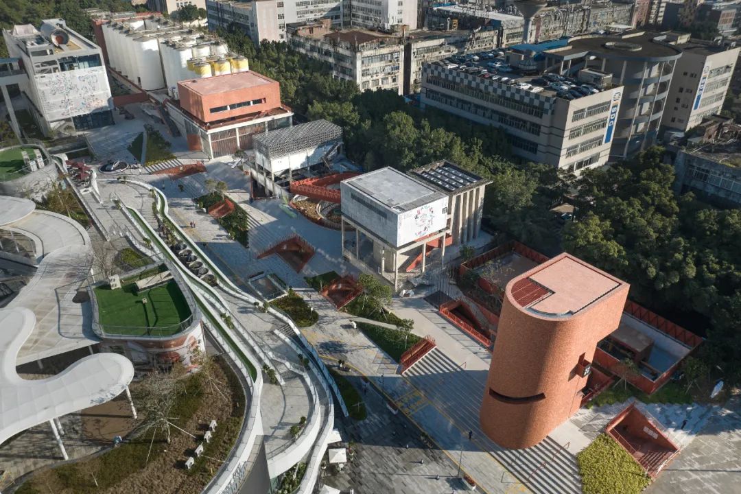 正如本届深双的总策展人鲁安东所说,“一个社会的记忆特别重要,它实际上是大家在情感上的共鸣和地方认同的关键。”作为深圳第一例将拆除重建与综合整治融为一体的复合式旧工业区更新项目,经过改造的金啤坊不仅是一个工业遗存的重塑,更是一种深圳时代精神的重塑。金啤坊的改造由都市实践建筑事务所设计完成,以“即地制造”为主题概念,采用整合、插接、介入性的改造策略,将场地与周边地块的高差巧妙利用起来,作为整个改造的底座,统合原本散落的工业建筑,利用开挖手段塑造出一系列内外通道与线性活动空间,为连续的文化空间体验和积极的城市融合提供可能。