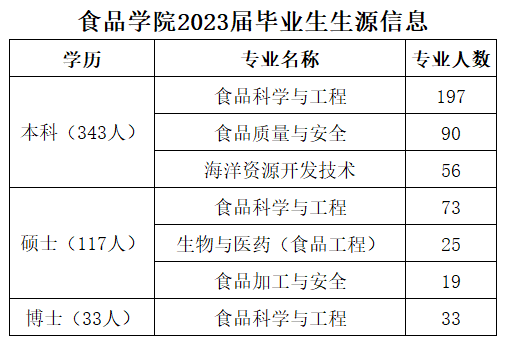 食品学院2023届共有毕业生493人,其中,本科343人、硕士117人、博士33人。