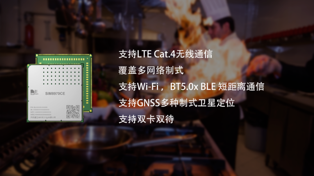 智能监控摄像头有了SIM8970系列的无线连接支持,部署起来更加方便,能对餐饮后厨储存、清洗、切配、烹饪、专间、留样、洗消等环节无死角、多细节监控。这些监控内容上传到外卖平台,消费者能从手机等终端实时查看餐饮店的卫生情况,吃起来更放心。