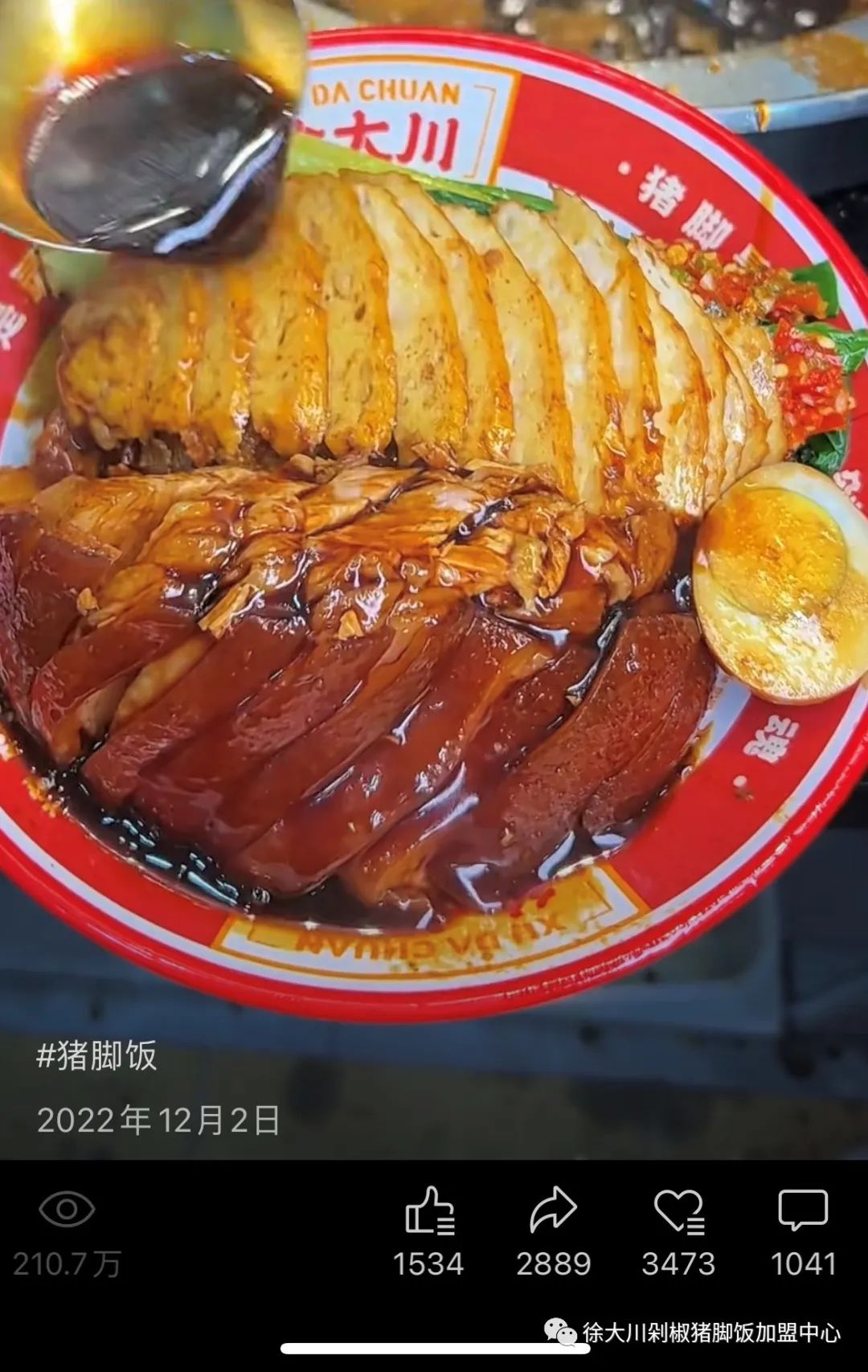 基于上述商店模式将是一种新的趋势。以小编推荐的徐大川剁椒猪脚饭为例,在疫情时期兴起的外卖模式,短短两年间开店近100家。