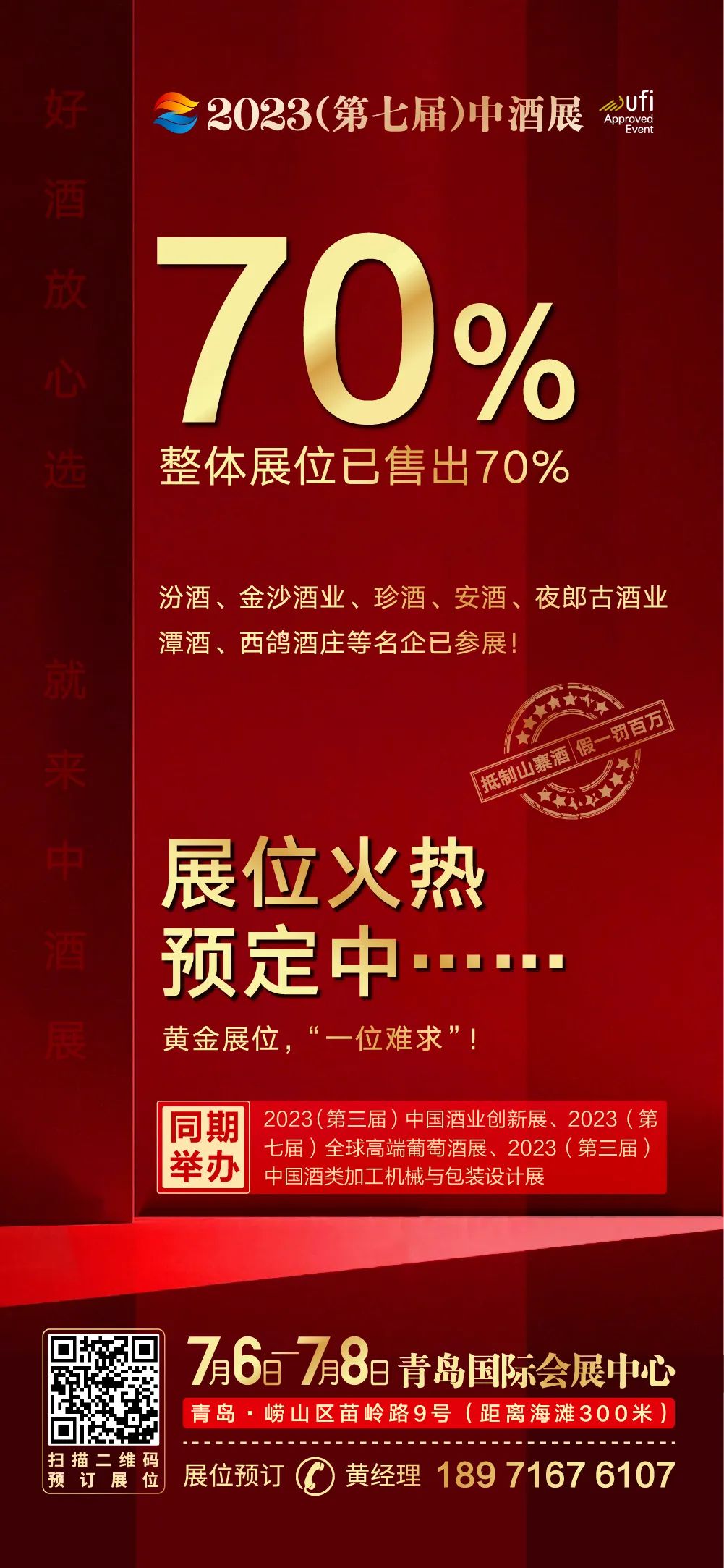 据中酒展组委会介绍,即将在7月6-8日在山东·青岛国际会展中心举办的第七届中酒展,整体展位已售70%;将于明年3月5-7日举办的第四届华南中酒展整体展位预定也已超过70%。