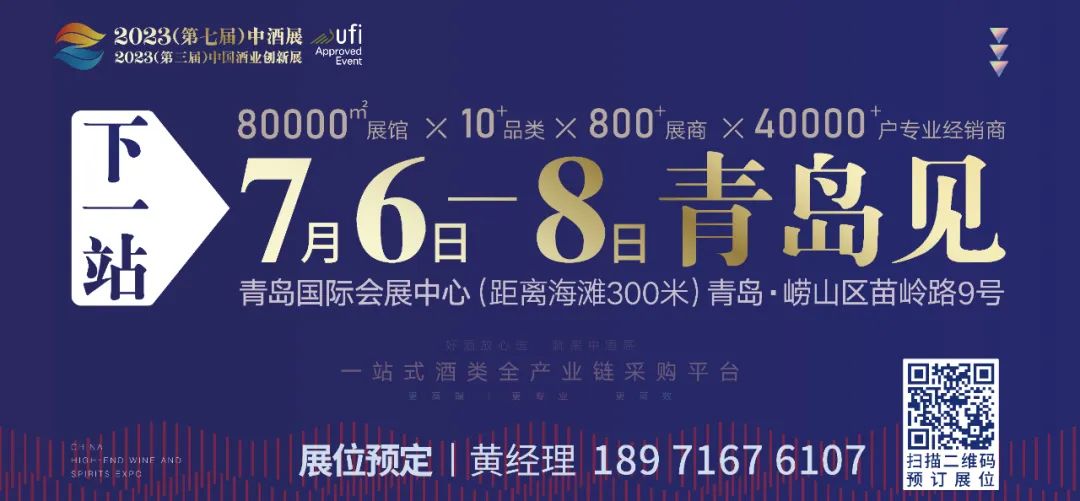 今年7月6-8日,第七届中酒展将在山东·青岛国际会展中心盛大举办,80000+平米展出面积,将汇聚10+品类、800+参展企业,预计将有超40000户专业经销商到场参观选品。目前,汾酒、金沙酒业、珍酒、安酒、夜郎古酒业、潭酒、西鸽酒庄等企业已确认参展,目前展位预订十分火爆,整体展位已售70%,有意向的企业或品牌需加紧时间抢位,咨询电话:189 7167 6107(黄经理)
