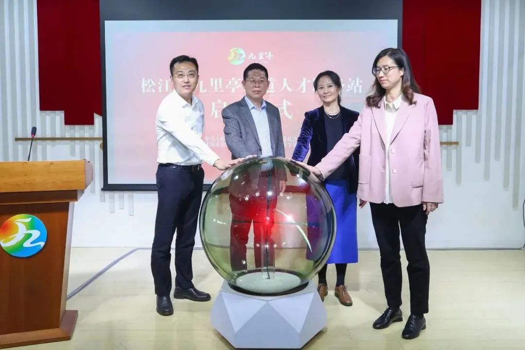 街道党工委副书记石宝孙,松江区人才服务中心主任柴春燕,街道党工委委员、办事处副主任朱秀兵,党工委委员、人大工委副主任陈妮共同为九里亭街道人才服务站启动揭幕。