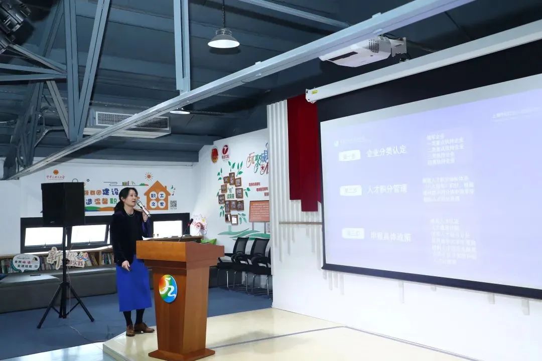 同时,松江区人才服务中心主任柴春燕从上海市居住证积分、上海市引进人才申办本市常住户口等六方面作了详细的人才政策宣讲。
