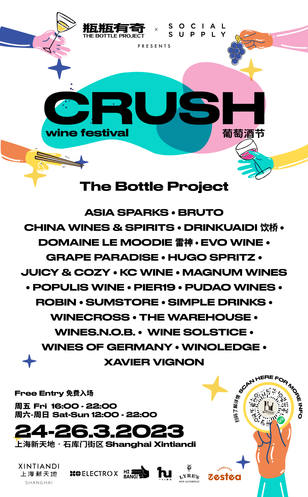*You can redeem 4 wine tasters at any CRUSH wine booth, 2 food items at selected restaurants in Shanghai Xintiandi