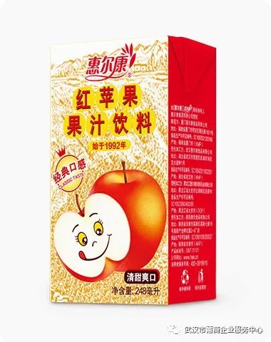 1992年惠尔康首创纸包果汁饮料红苹果,凭借经典配方在当年创下销量第一的成绩。已经连续五年做到年均将近30%增长,现今在全国20+省份销售火爆,真正做到铺货即动销。其解油、解腻、解辣等饮用需求,不仅适合餐饮、校园、卖场、便利店等多种渠道流通,其“红火”的特性,在家庭及礼品市场发展势头也十分迅猛。