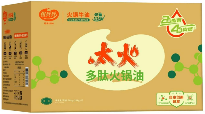 为了解决客户的痛点,也为了平衡美味与成本的矛盾,张兵兵火锅牛油不断进行产品创新,太火多肽火锅油应时而生。