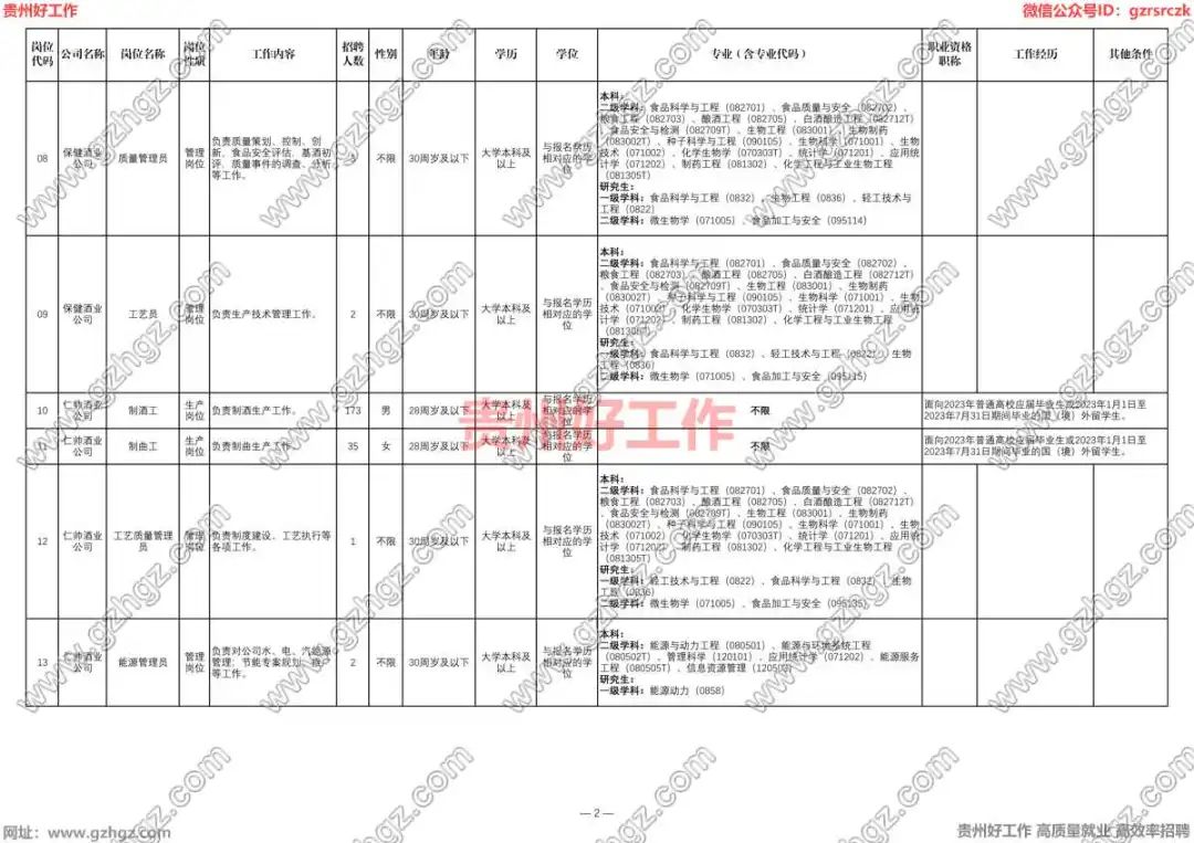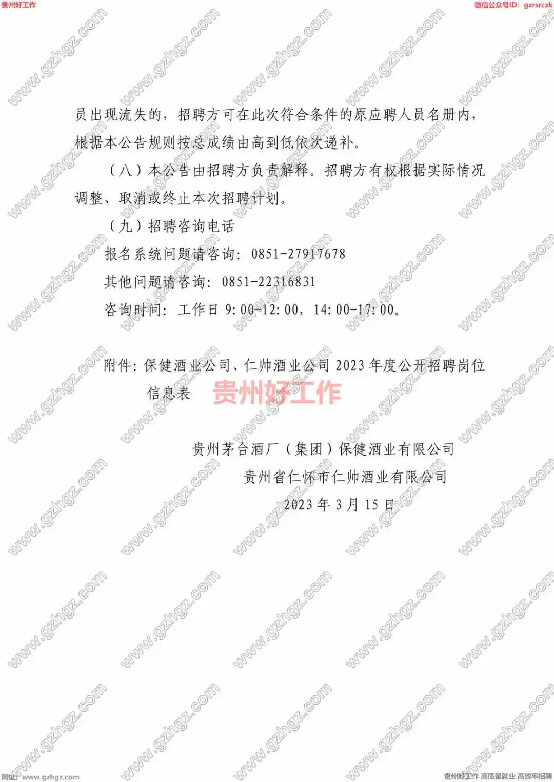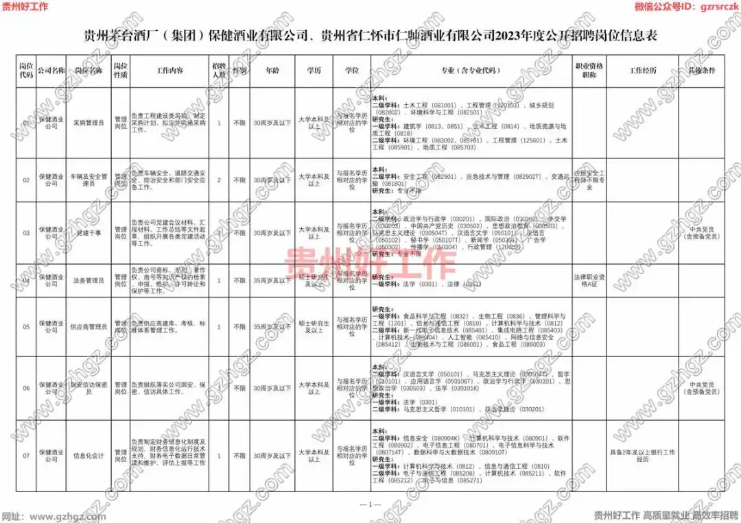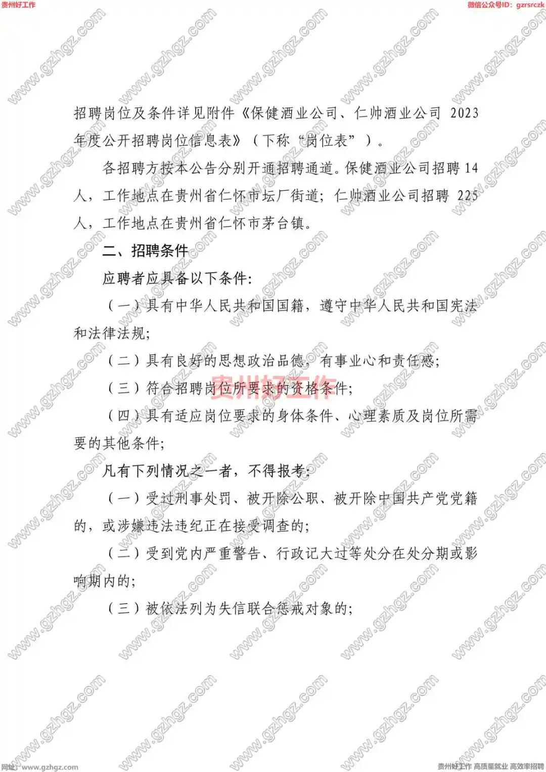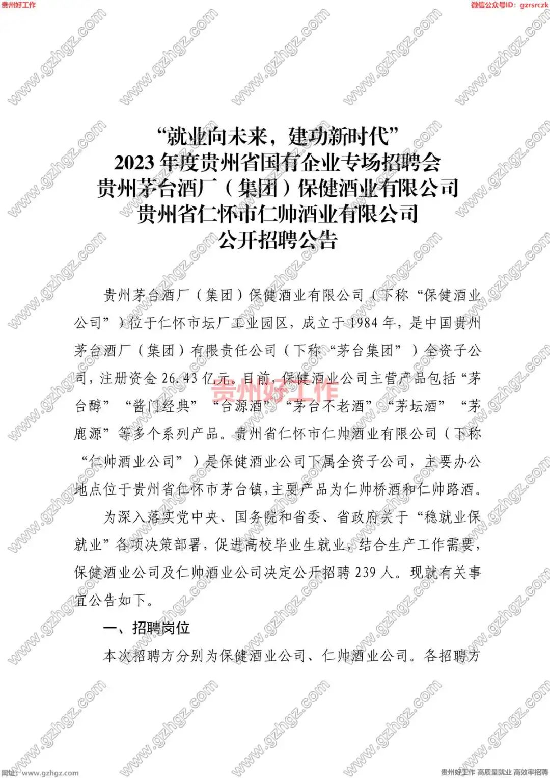 贵州茅台酒厂(集团)保健酒业有限公司、贵州省仁怀市仁帅酒业有限公司2023年度公开招聘公告