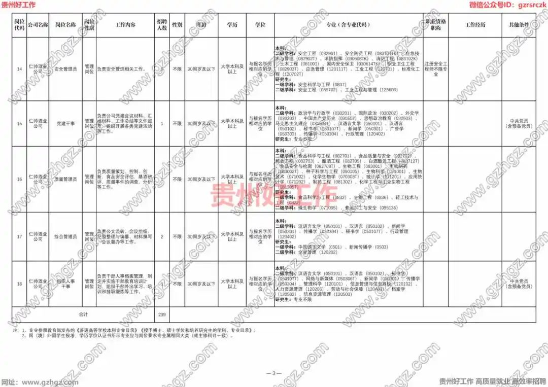 遵义 | 贵州茅台酒厂(集团)保健酒业有限公司、仁怀市仁帅酒业有限公司2023年招聘239人(报名时间:3月20日至22日)