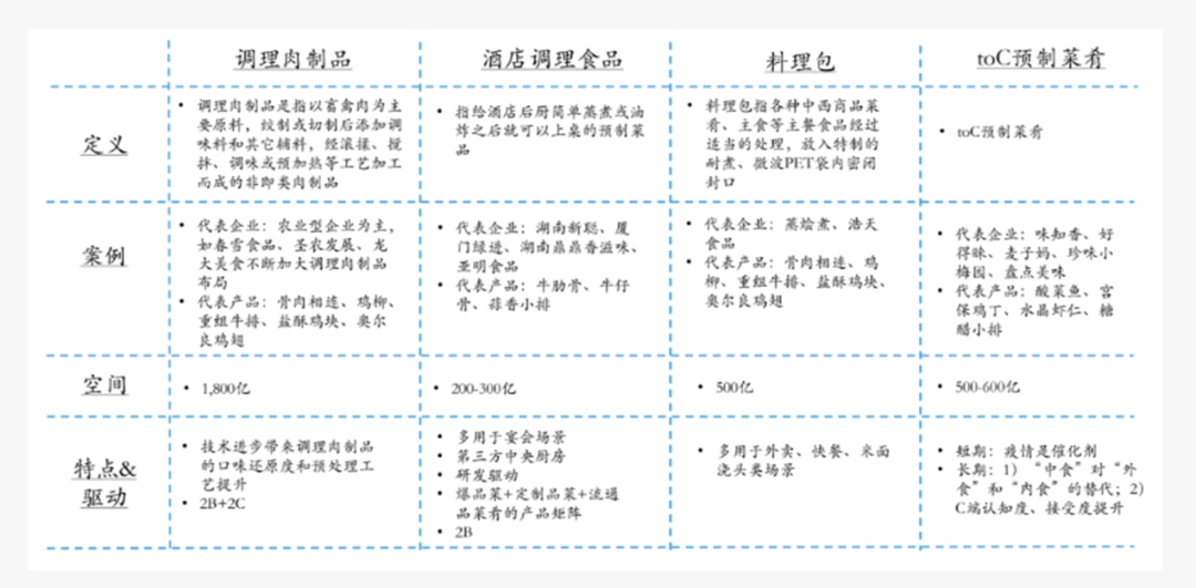 近期预制菜赛道的一起知名投融资事件也引起我们的注意:包装蔬果及预制菜品牌商「优野农业」获数千万元A轮融资,该品牌的商业模式本质是s2b2c,即一方面整合不同维度及海拔的蔬菜种植基地,实现对山姆、麦德龙等连锁商超以及对朴朴超市、美团买菜等知名生鲜电商供应基地直采的蔬菜、净菜、水果等;一方面推出预制菜子品牌“优予”,为区域型便利店、精品卖场供应沙拉便当等冷鲜预制菜。这不难让人联想到,基于线下社区打造s2b2c模式的预制菜零售连锁品牌味知香、好得睐等。面对2C预制菜这样一个尚在发育早期的赛道,BC双轮驱动也成为多数玩家的生存之道,2C究竟要投入多少资源和成本,如何复用原有的资源、技术优势成为所有跨界玩家必须直面的问题。因此,从速冻食品企业跨界预制菜这一视角出发,探讨何种跨界玩家更容易将预制菜打造为第二增长曲线。一、同样是速冻食品企业,为何安井食品能够在2C预制菜一枝独秀?去年,餐饮大数据研究与测评机构NCBD(餐宝典)发布了“2022中国餐饮金饕奖预制菜企业TOP50”,这其中既有很多我们熟悉的老面孔:安井、国联水产、千味央厨,也有一些看似不出名、但在预制菜受众中已取得不错的反响的新秀玩家:盖世、谷言、王家渡……不过,如上所述,三全食品目前仅针对预制菜赛道推出了三款炒饭,千味央厨的sku仍集中在面食、馒头、汤圆、饺子等传统速冻食品的领域内,这意味着这份榜单统计的范围其实远远超出了狭义预制菜的范畴。什么是狭义预制菜?加工深度最大且几乎达到加温即可食用的速冻菜肴,可称之为狭义预制菜。另外一种常见的行业分类,是按加工深度和食用便捷性将预制菜分为即食、即热、即烹、即配四类。但这一分类有很多问题:即食品类如卤味、罐头等更像零食,消费场景更广泛,狭义预制菜的消费场景更多在正餐;又例如即热品类中,方便面、速冻水饺都是可以加热即食的,但这显然不属于消费者认知中的预制菜;而即配品类一般指封装好的净菜,按这一说法,传统商超很早就在售卖2C预制菜……按此定义,安井食品进入这份榜单也显得更有分量:与三全食品、千味央厨同作为速冻食品企业出身,为何仅有安井食品可以推出真正意义的2C预制菜,且已打造酸菜鱼、巴沙鱼、天妇罗虾等市场爆品,取得榜单第一的位置?答案其实很简单,安井食品最初在速冻领域的定位就明显区别于三全食品、千味央厨等头部企业:- 安井食品创立于2001年,主要从事的就是速冻火锅料制品(包括速冻鱼糜制品、速冻肉制品等)、速冻面米制品、速冻菜肴制品等速冻食品的研发、生产、销售;