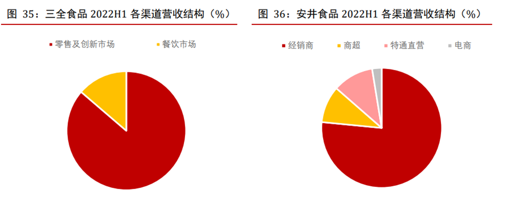 而在渠道结构上,安井食品、千味央厨以B端客户为主,三全食品以C端为主。2022H1,三全食品在零售端、餐饮端的营收收入分别达到86%、14%;而安井食品的渠道主要依赖其1033家一级经销商,大润发、永辉、沃尔玛等商超客户,以及部分特通直营、电商渠道,经销商的营收贡献达到76.55%。而千味央厨主要是耕耘餐饮渠道,知名连锁餐饮企业如百胜中国、华莱士、真功夫、九毛九、海底捞都是其核心客户。而行业现状是,消费者对2C预制菜的消费已养成对盒马、叮咚买菜等新兴渠道尤其是生鲜平台的依赖。总体看,即使是能力能够得到最多复用的速冻食品企业,在生产、渠道上也有一些隐忧。预制菜行业有多早期?艾媒咨询显示,即使是味知香、安井食品等早期布局预制菜的企业市场占有率仍不及1%,预制菜还有很长的路要走,速冻食品企业也需要在生产、渠道等更多维度及时补课。免责声明:本号致力于好文推送,内容仅供学习、交流之用,对文中观点保持中立。文章及图片版权归原作者或机构所有,若涉及版权问题,烦请联系删除。
