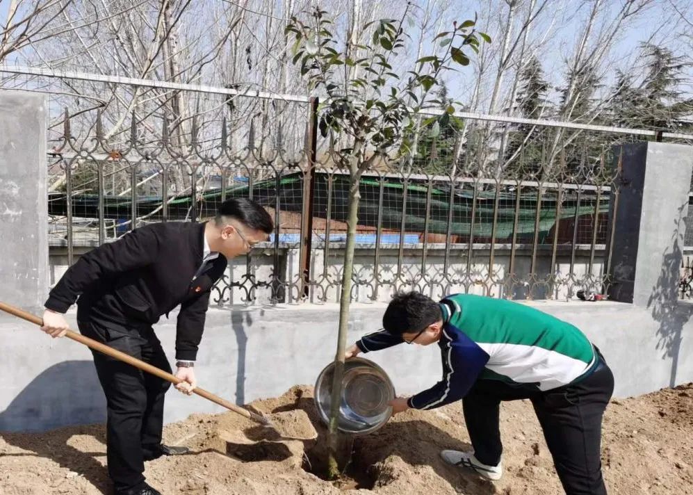 阳春三月绿,惊蛰万象新。青年志愿者们如放飞的小鸟,感受着春的气息,喜悦地忙碌开了。植树现场一片热火朝天的劳动景象,搬树苗、挖坑、扶苗、填土、踩实、浇水,分工协作,齐心协力种下一棵棵小树苗,各个环节衔接有序,处处是劳动的身影和欢声笑语。