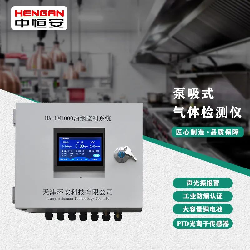 北京中恒安公司自主研发的HA-LM1000油烟监测系统,是一款在线油烟监测系统,可有效监测烟气中油烟浓度,颗粒物浓度,非甲烷总烃的浓度,同时还可实时监控餐饮企业风机工作状态,油烟净化器工作状态,并将数据实时上传到监管平台。
