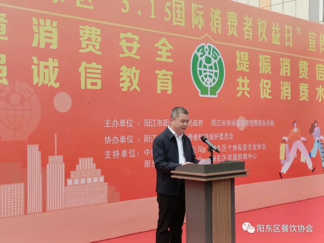 今天2023年3月15日,由阳江市阳东区人民政府、阳江市市场监督管理局阳东分局主办;阳江市阳东区消费者权益保护委员会协办的“阳江市阳东区隆重纪念 315 国际消费者权益保护日暨“放心消费粤行动”系列活动”在阳东区京源上景商业区隆重举行!支持单位:中国电信阳东分公司、阳东区个体私企协会、阳江市阳东区餐饮行业协会、阳东区京源城购物中心;