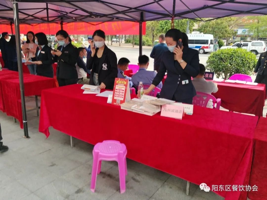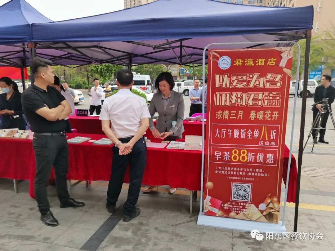 阳江市阳东区餐饮行业协会工作人员现场宣传“放心消费粤行动”相关内容,切实起到政府与企业之间的桥梁、纽带作用。