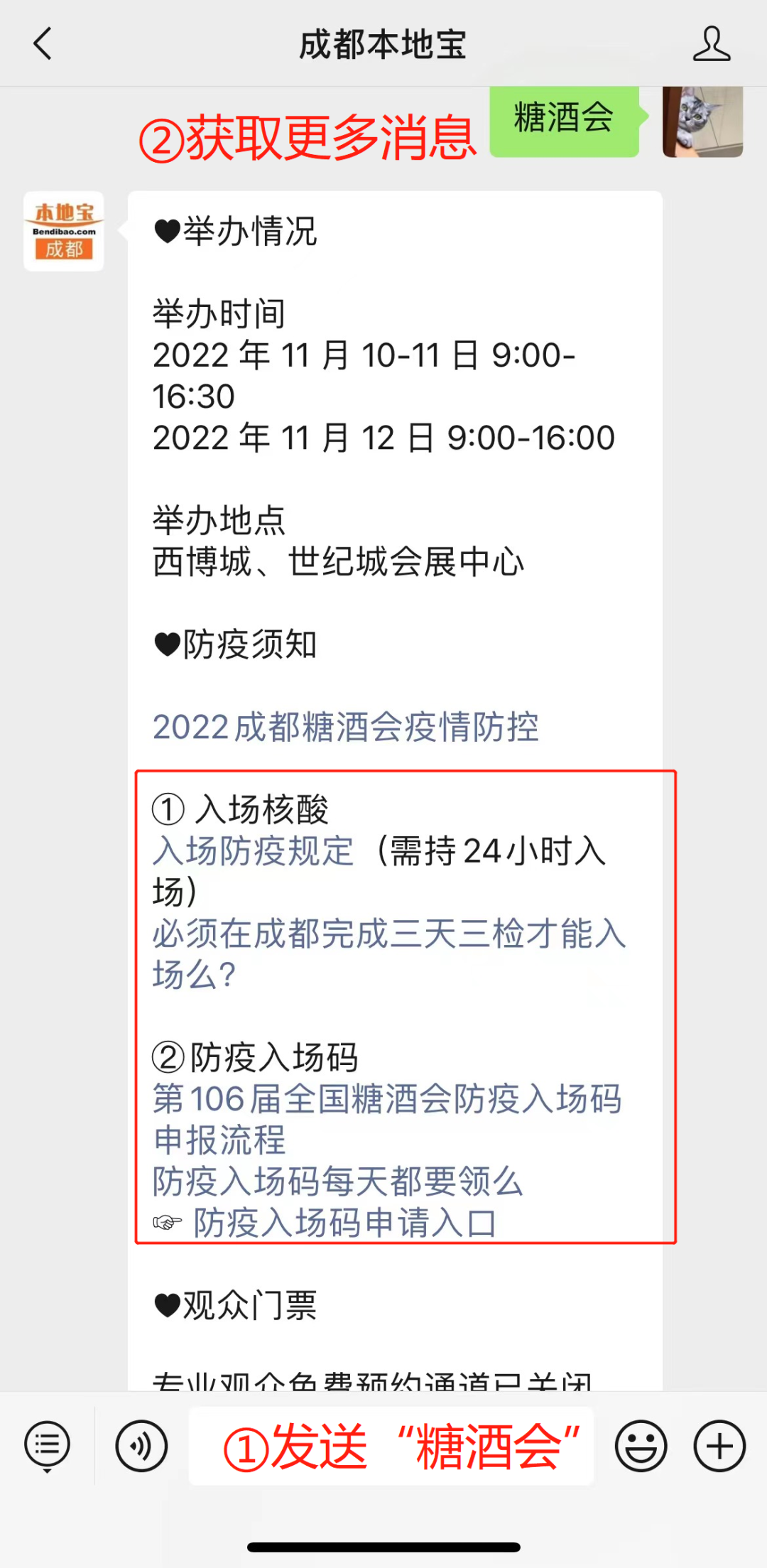 购票及入场码申请入口:点击下方链接关注【成都本地宝】公众号,在对话框发送【糖酒会】即可获取观众购票入口、入场码申请流程等。