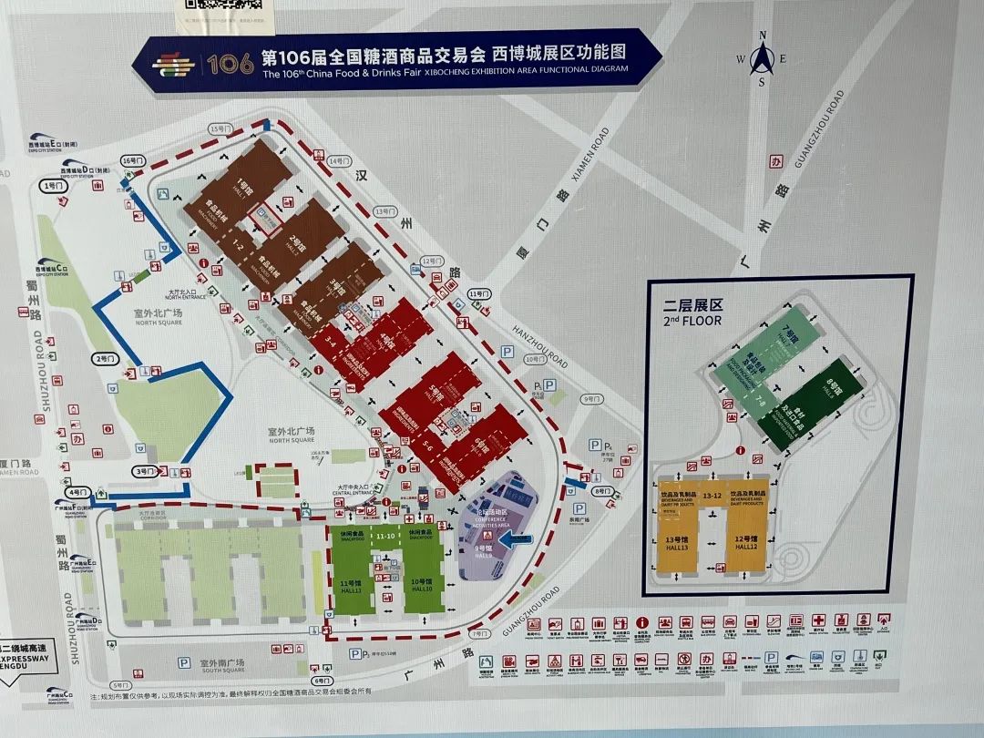 前往休闲食品类展区选乘地铁1、6或18号线前往西博城C/D下车