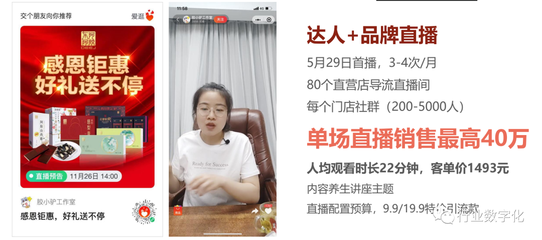 东阿阿胶旗下达人直播案例,品牌拥有80家直营门店,集中在山东、北京、上海。