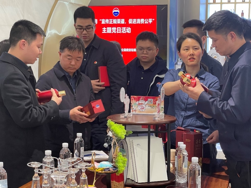 为进一步提高消费者合法权益,增强消费者对茅台酱香系列酒的鉴别能力,提升茅台酱香系列酒品牌形象,3月14日——3月15日,酱香酒公司第二党支部联合仁怀市市场监督管理局、仁怀立鼎商贸和仁怀恒源泉两家经销商公司,在仁怀酱香酒体验中心、解放广场开展“宣传正规渠道·促进消费公平”主题党日活动。