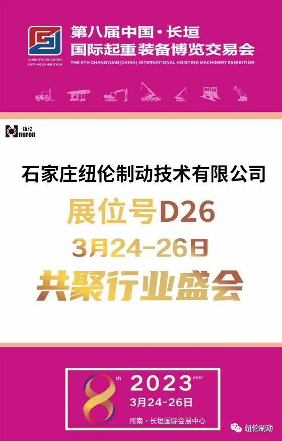 第八届中国·长垣国际起重装备博览交易会于3月24日-3月26日在河南 长垣国际会展中心隆重召开,我公司展位号是D26,请持续关注锁定,欢迎各位领导莅临指导!